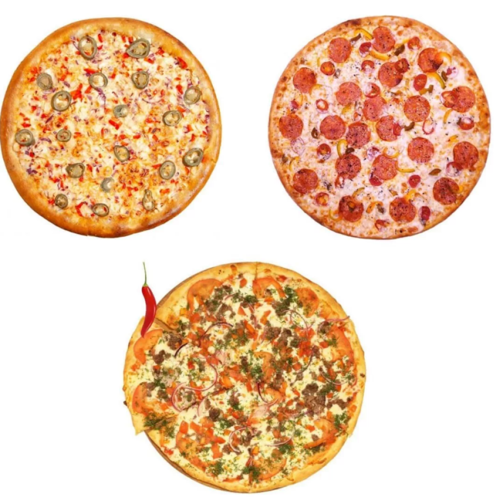 Пицца «Горыныч» 32см, пицца «Кавказская» 32см, пицца «Мексиканская» 32см, соус сливочно-чесночный 3шт