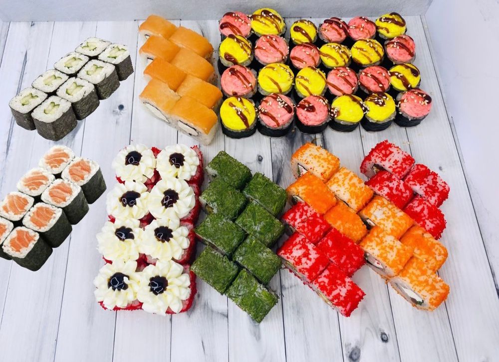 Ролл «Просто филка», ролл «Филка сливочная», ролл «Нагано», ролл «Весенний овощной», ролл «Атланта унаги», ролл с огурцом мини, ролл с лососем мини, ролл «Горячий краб», ролл «Горячий санрайз», ролл «Томаго»